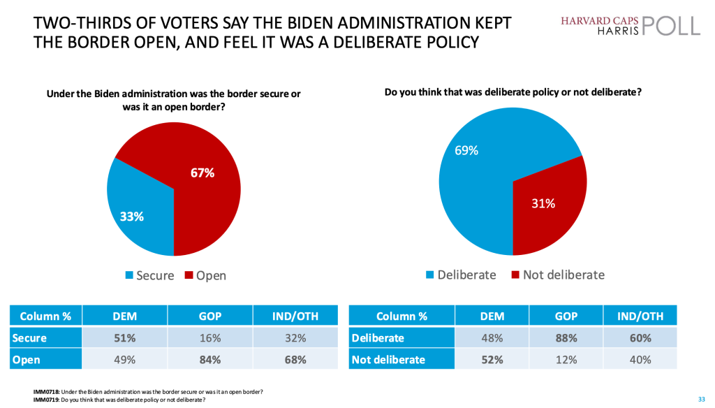 Two-thirds of Americans, including roughly half of Democrats, believe the Biden Administration deliberately opened the border.