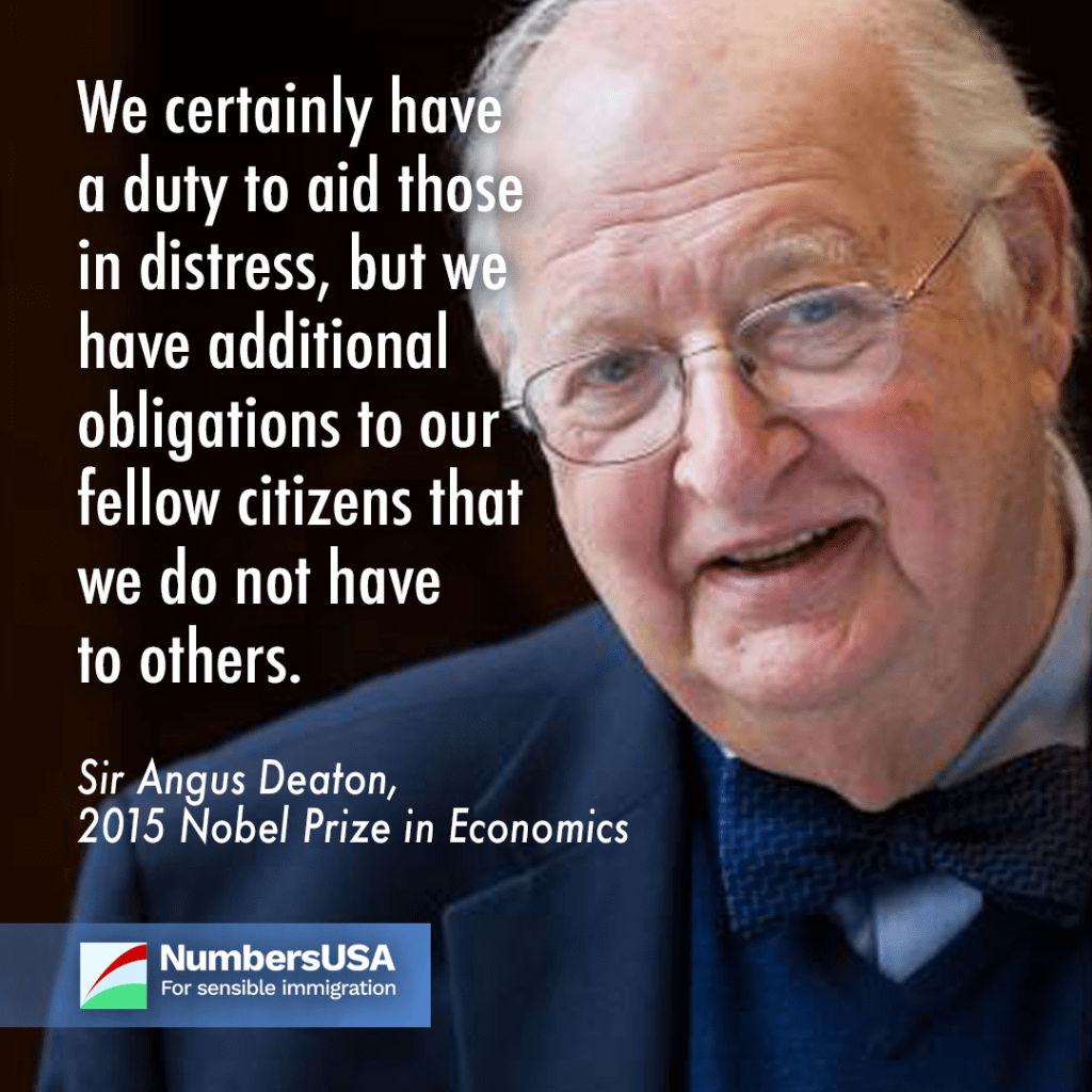 Immigration contributes to inequality. America has a special obligation to our citizens. And America’s economy is not working for the majority of citizens today. Those are three of Sir Angus Deaton’s – recipient of the 2015 Nobel Prize in Economics – boat-rocking conclusions in his recently published article, “Rethinking My Economics,” on the International Monetary Fund’s website.