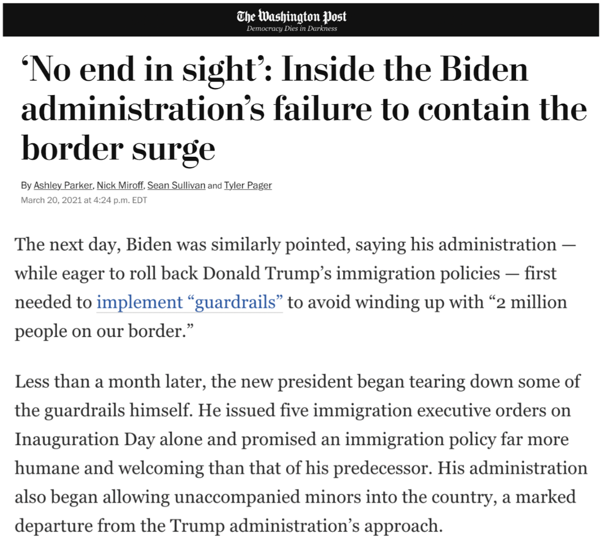 President Biden pledged that we wouldn’t see “2 million people on our border” on his watch. He was wrong. How we got here (hat tip, The Washington Post):