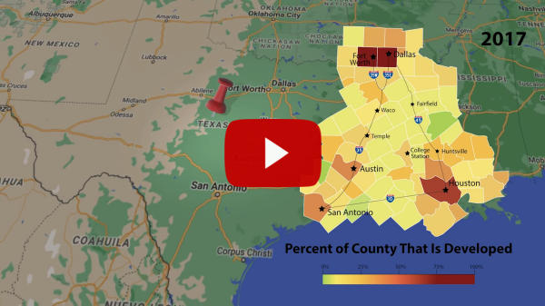 “The long Texas population boom has made the state a perennial leader in the loss of habitat needed for regional and global environmental health. For instance, between 2002 and 2012, Texas lost more than twice as much habitat and farmland to sprawl as the second worst state, Florida.