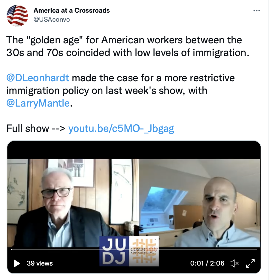 Leonhardt is calling for a civil, thoughtful debate that acknowledges tradeoffs. If you watch the longer clip, you’ll hear Leonhardt state that “admitting more immigrants and expanding the workforce really is an anti-inflationary policy.” That’s a popular position inside the Beltway, but Leonhardt takes the pragmatic step of illustrating the downsides.