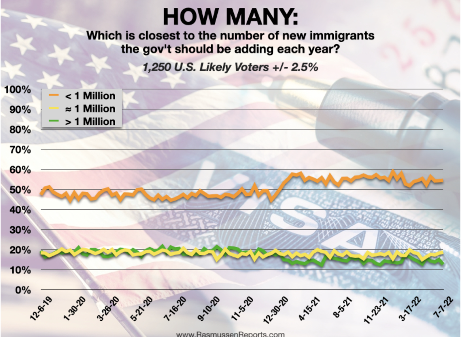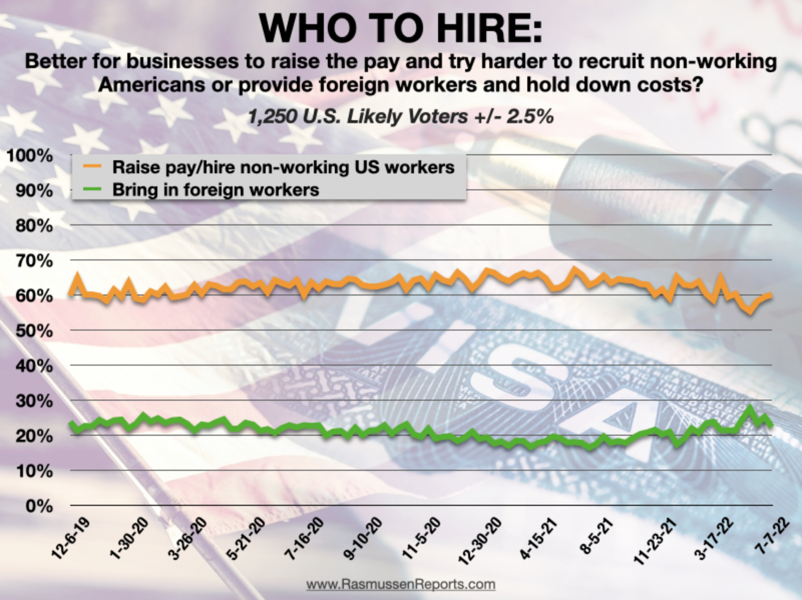 Tighter labor markets are good for workers. Looser labor markets are good for corporations and investors. Americans have competing interests here, but two-thirds of Americans don’t have college degrees and are disproportionately impacted by loose labor policies. Nevertheless, the current Congress has attempted to insert immigration increases into The Build Back Better bill, the COMPETES Act, and now the defense authorization bill – all during a post-COVID recovery, high inflation, and a looming recession. It’s pretty clear whose interests those actions are intended to serve.