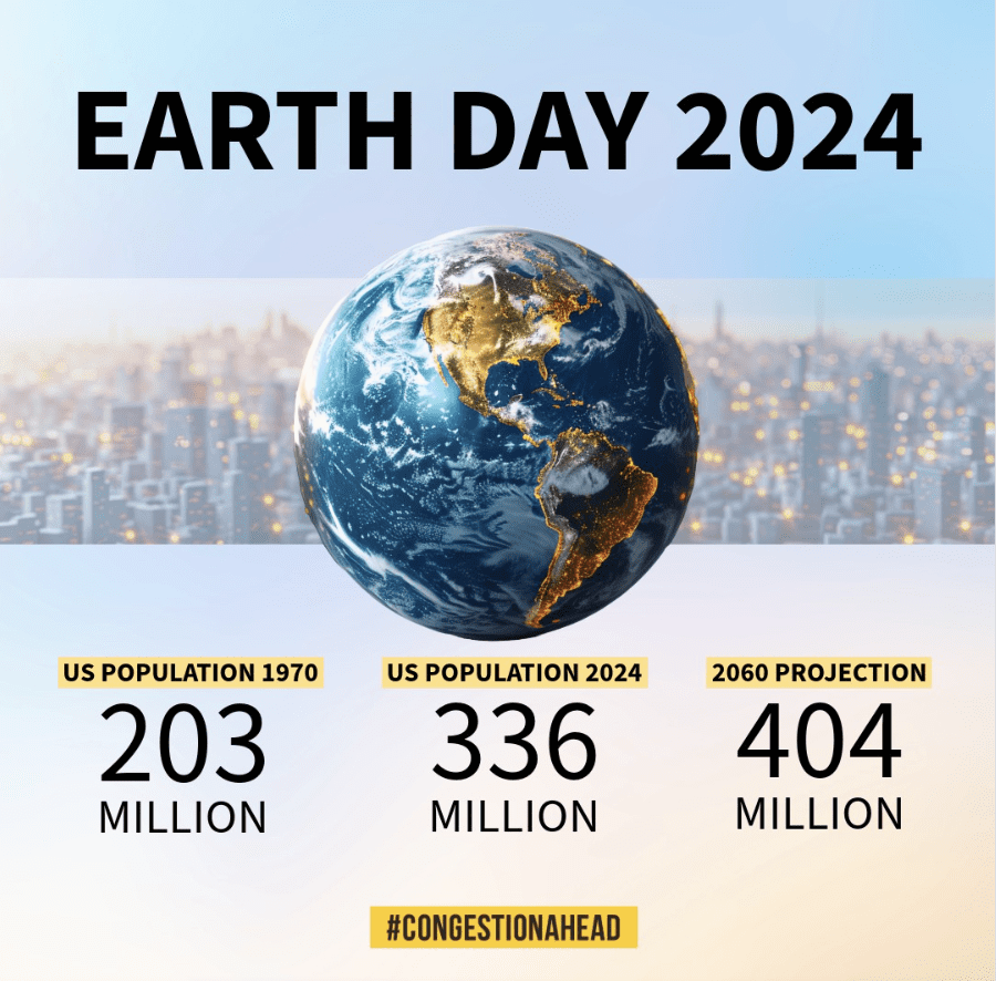As our population gets larger, so do our environmental problems. In 1982, the U.S. population was 232 million. During the 42 years that have followed, to accommodate an additional 104 million people, we have paved over 43 million acres of natural land — an area the size of Florida. Not only has the resulting habitat loss endangered more than 1,000 species, America’s unsustainable growth has been exacerbating other serious environmental problems which get worse with each passing Earth Day — water scarcities, fisheries collapse, urban sprawl, loss of prime farmland, and deforestation.