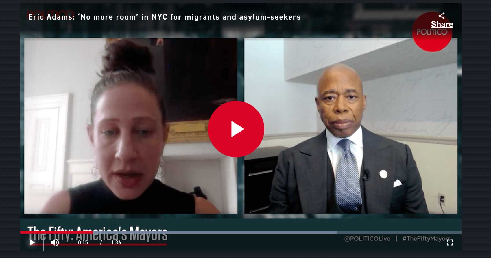 “Adams noted that the governor of Colorado, a Democrat, had also bused migrants to New York City. He said the actions of those two governors showed ‘bipartisan disrespect for cities and it was wrong.'”