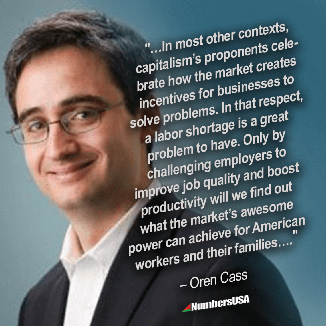 Oren Cass puts immigration expansion in the larger context of economic proposals to keep labor “plentiful and cheap” – from Fed Chair Powell’s call to restore “balance” to the tight labor market, to think-tank advocacy for higher unemployment. DHS Secretary Mayorkas speaks about illegal immigration’s potential to help desperate employers fill jobs. The Secretary of Labor has called to increase immigration to fill jobs in Big Tech and restaurants, echoing the Mark Zuckerberg backed lobbying group FWD.us who acknowledge that immigration policy can provide “relief” to employers who might otherwise have to raise wages.