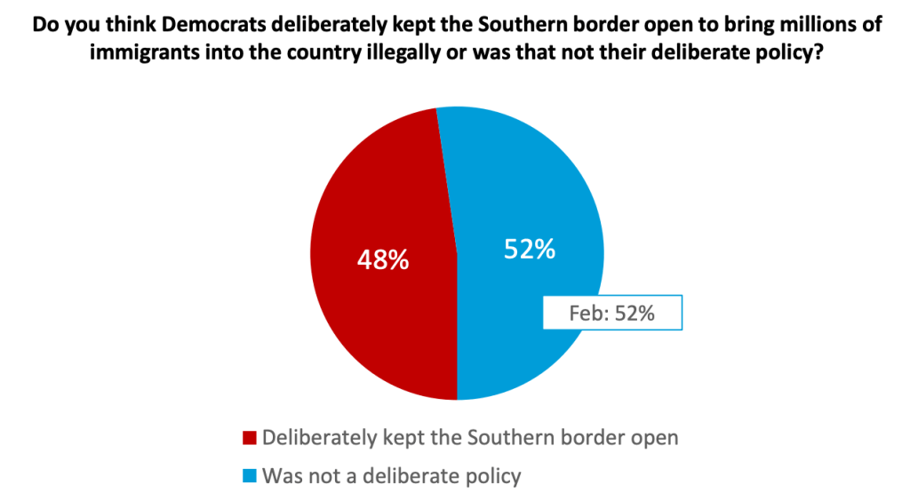A majority of voters believe the worst border crisis in American history was deliberate, according to a new survey by The Harris Poll and Harris X for the Center for American Political Studies at Harvard University. Among voters who agreed that the Democratic Party deliberately brought “millions of immigrants into the country illegally” were 73% of Republicans, 45% of Independents, and even 24% of Democrats.
