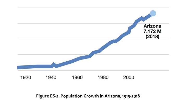Arizona’s rapid population growth in recent decades (a 4.2 million increase from 1982 to 2017) is manifesting in unrelenting and irreversible ways. The state’s population now stands at 7.6 million people. With climate change threatening to decrease available water resources, the time to pull back on rapid population growth in the desert is now.