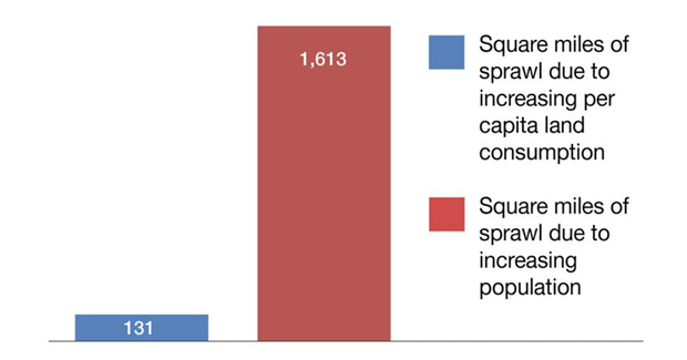 … had driven almost all (93%) of the state’s sprawling development during the previous three and a half decades …
