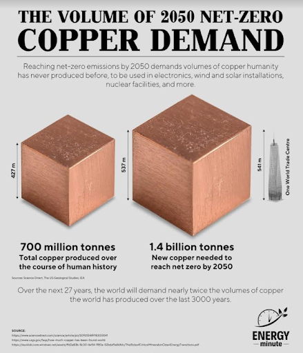 “Obtaining double the amount of copper (Cu) over the next 27 years as in all of human history,” advises NumbersUSA’s Scientific Director Leon Kolankiewicz, “will entail disturbing far more earth and habitat than was needed to obtain those first 700 million tonnes, because Cu ore grades have dropped. And again, that’s just one metal among many, although by volume and mass it’s one of the greatest ones because Cu has SO many useful applications.”