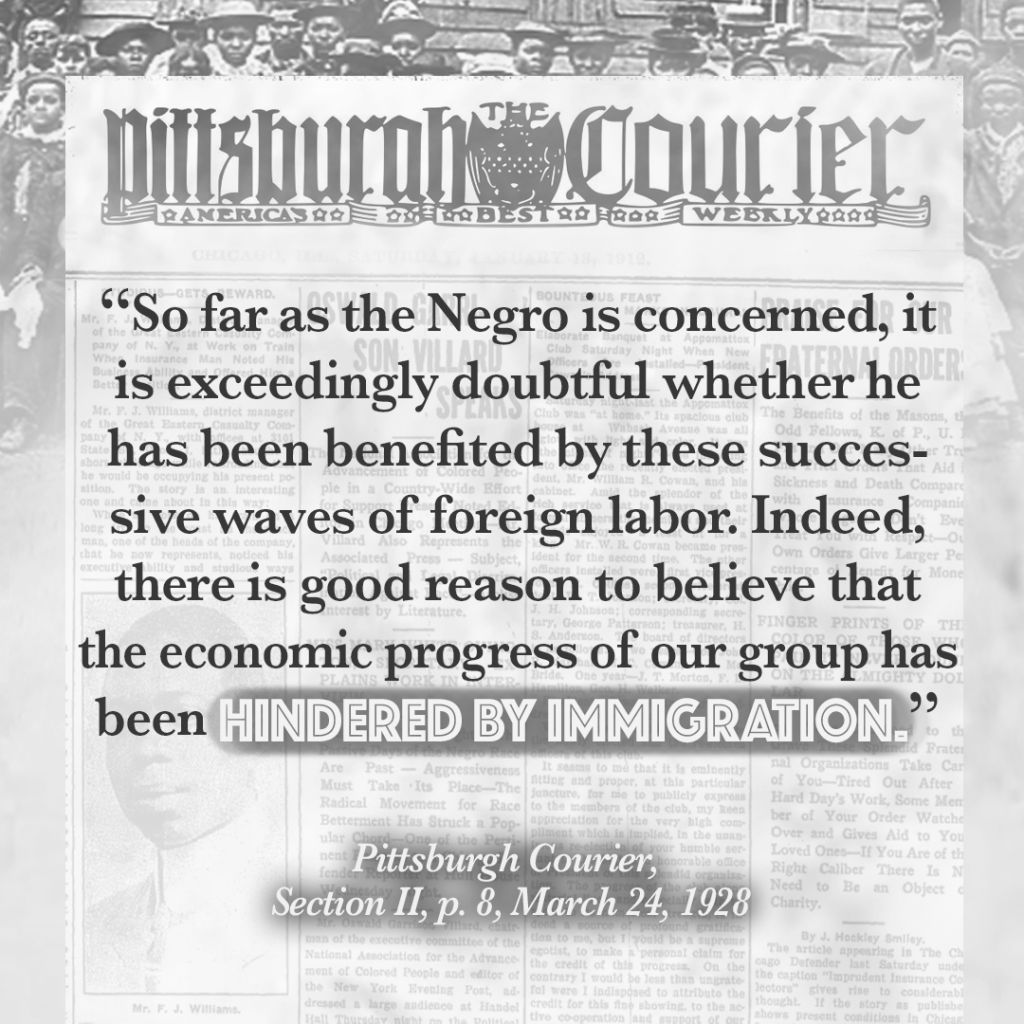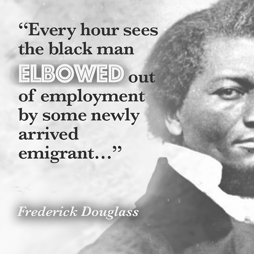 The first wave of mass immigration after 1820 drove free Black workers from their fragile economic holds in the North. Employers preferred immigrant workers over Freedmen. And immigrant unions worked to drive Black workers off job sites.